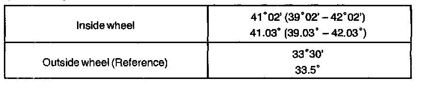 If the right and left inside wheel angles differ from the specified value, inspect the toe-in.