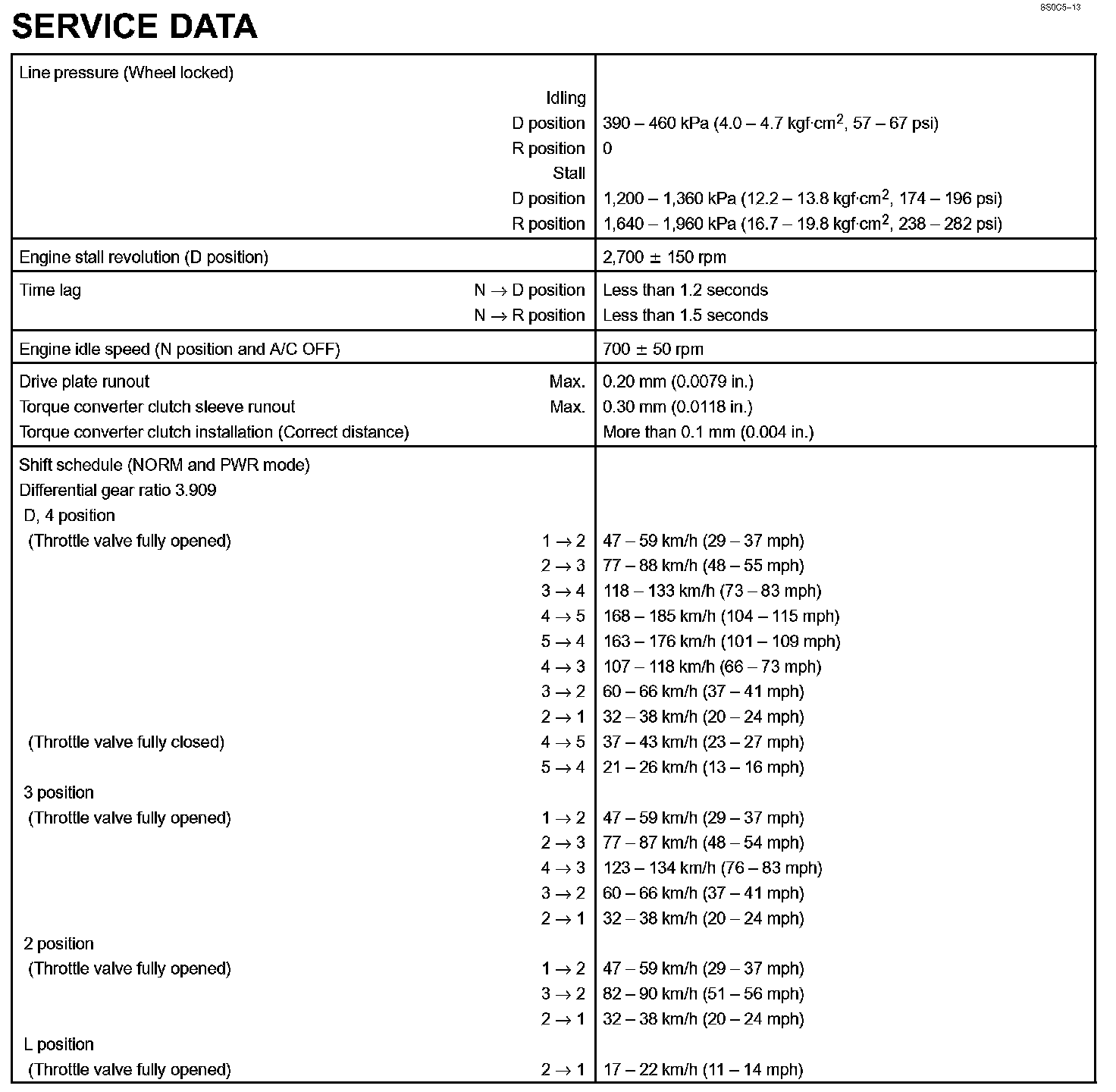 Automatic Transmission - Service Data Part 2:
