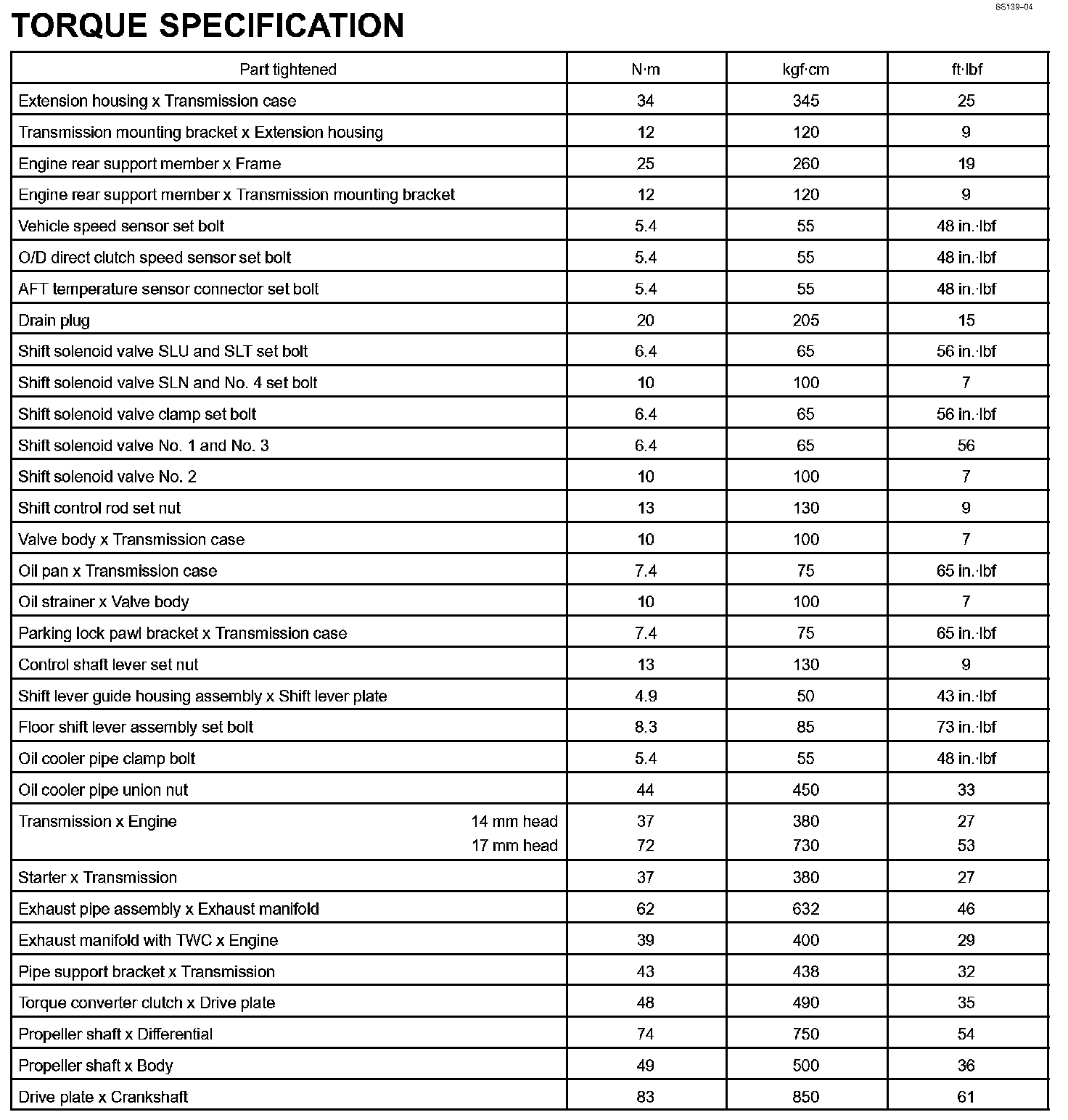 Automatic Transmission - Torque Specification: