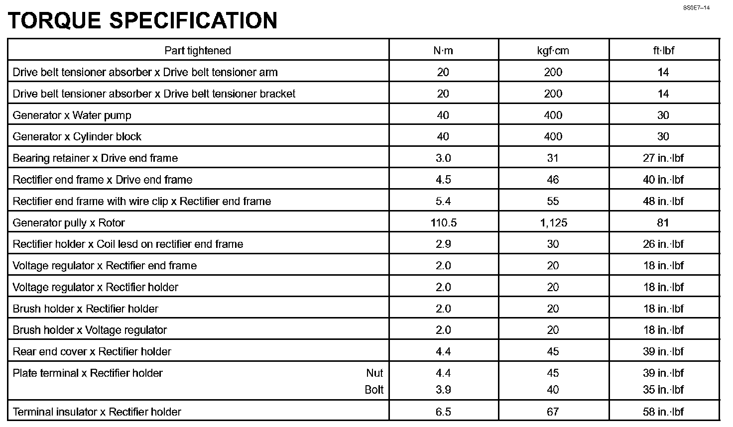 Charging - Torque Specification: