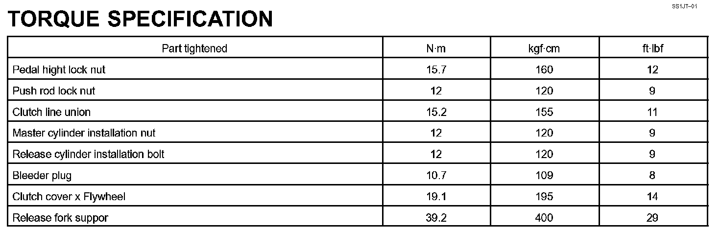 Clutch - Torque Specification:
