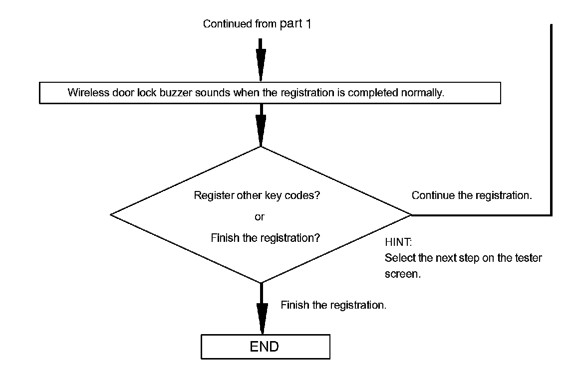 HINT: A brief outline of procedures for key code registration is shown. For more detailed information, please refer to the hand-held tester screen's instruction.