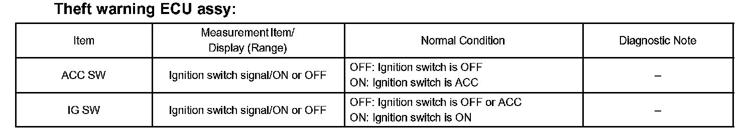 DATA LISTHINT: Using the hand-held tester's DATA LIST allows switch, sensor, actuator and other item values to be read without removing any parts. Reading the DATA LIST early in troubleshooting is one way to save time.