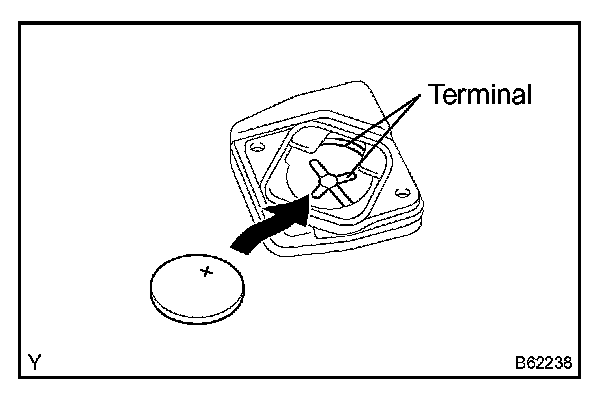 a. Install a new battery (lithium battery) with the positive (+) side up, as shown in the illustration.