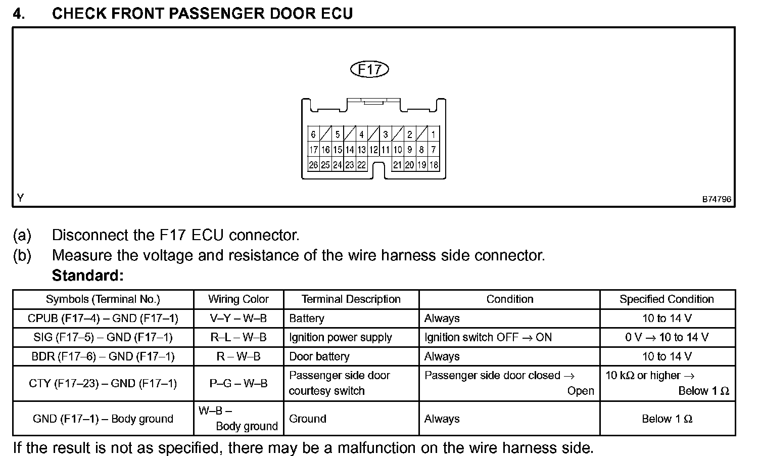 4. CHECK FRONT PASSENGER DOOR ECU