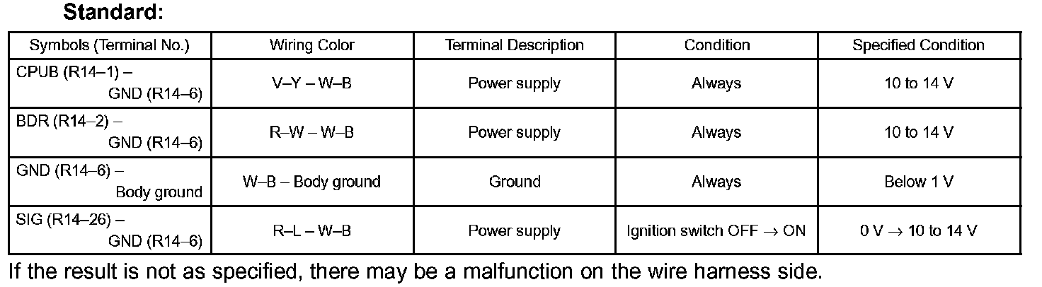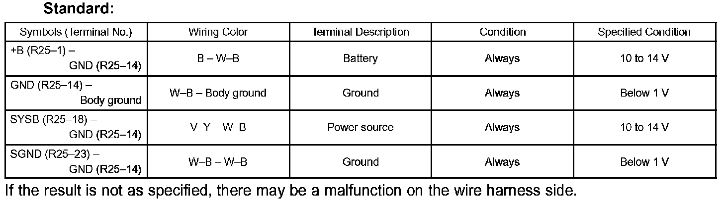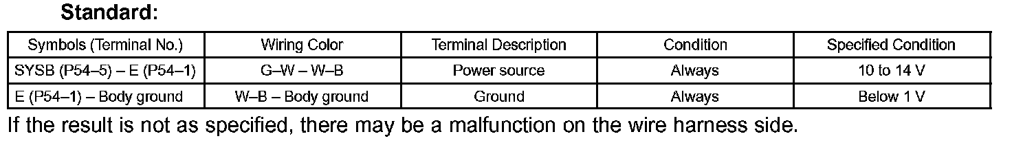 b. Measure the voltage of each terminal of the wire harness side connector.