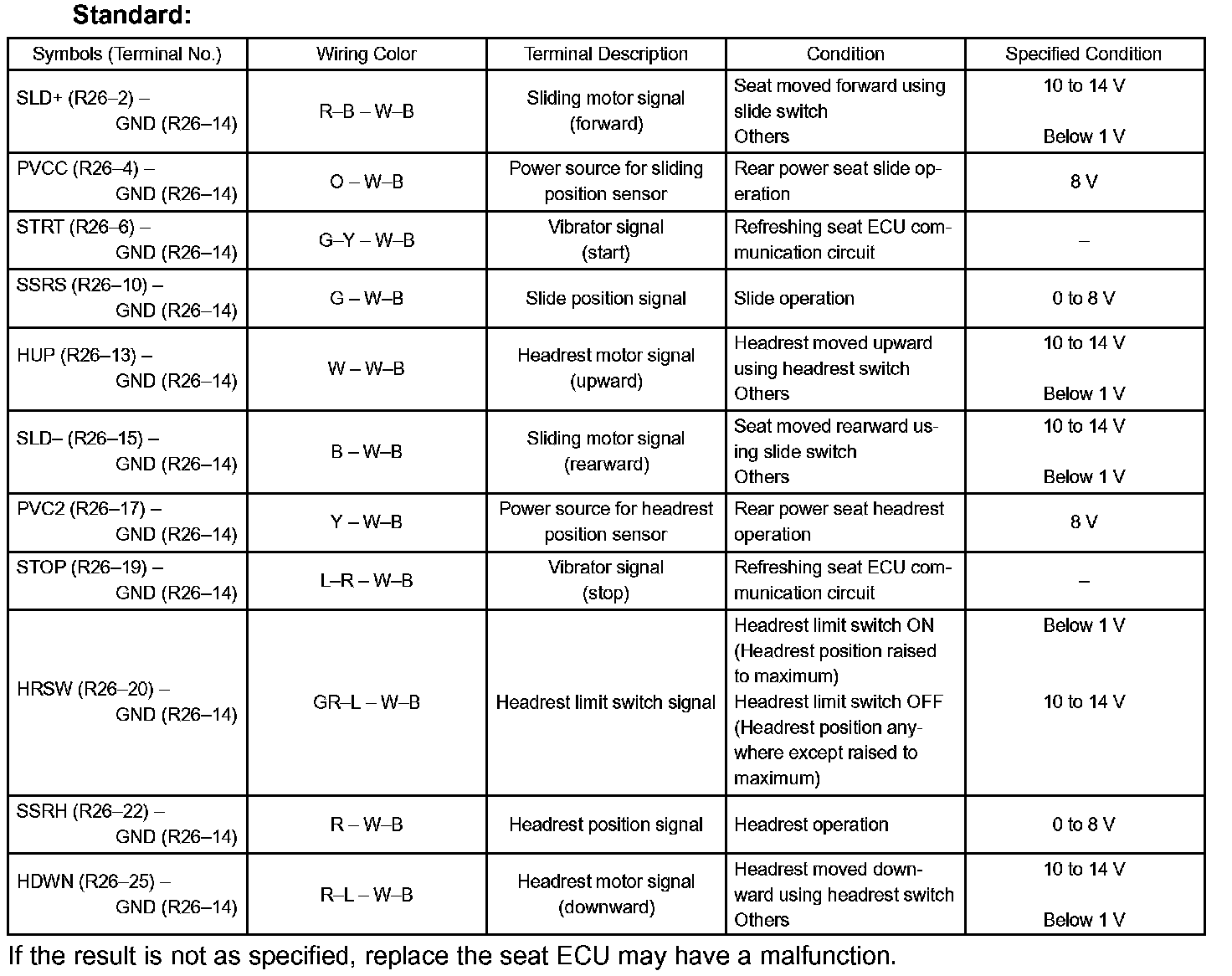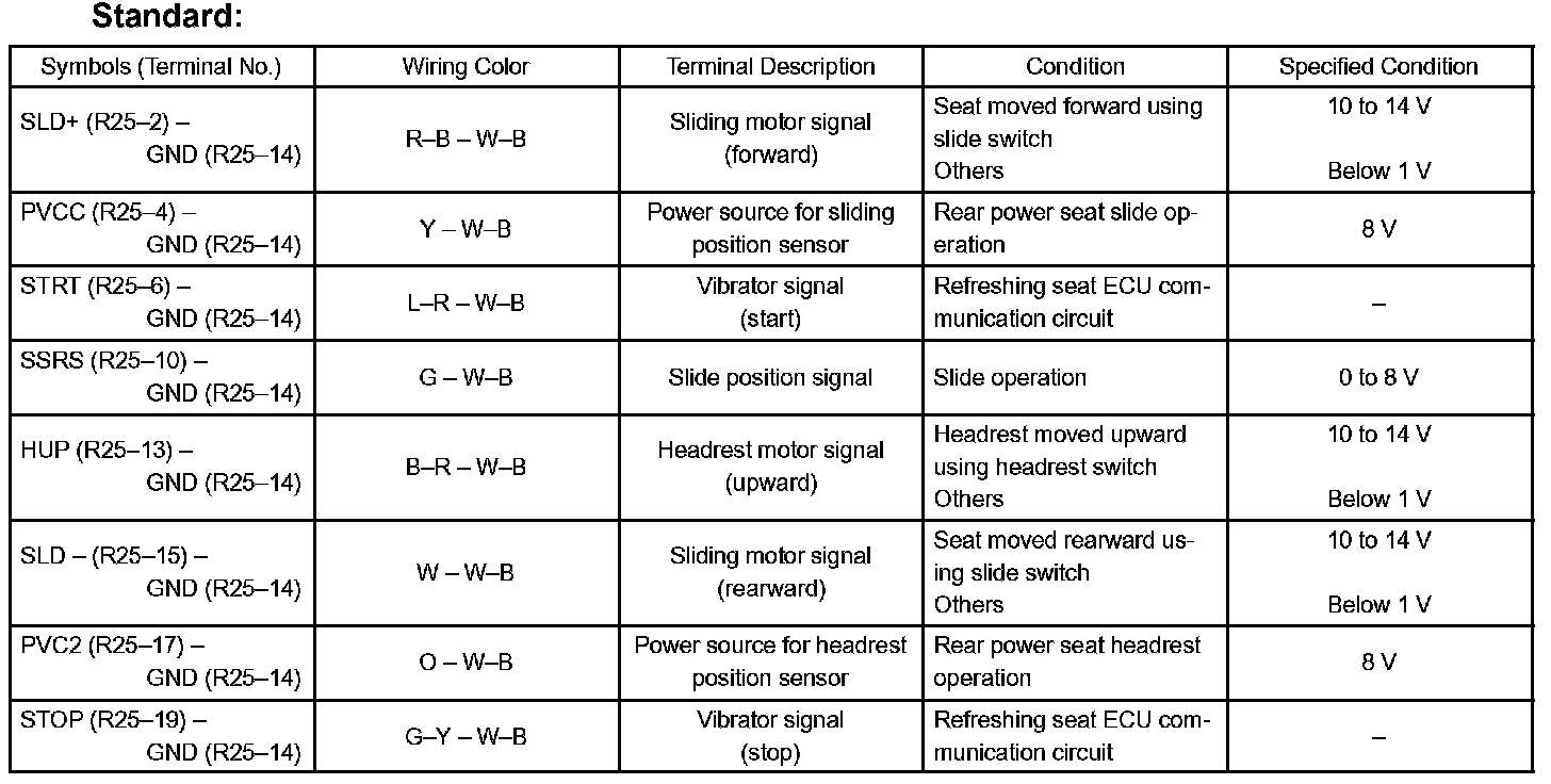 Terminals Of ECU / Pinouts - Check Rear RH Seat ECU:
