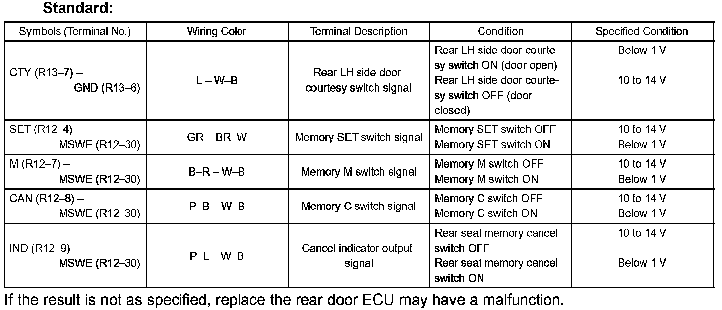 Terminals Of ECU / Pinouts - Check Rear Door LH ECU: