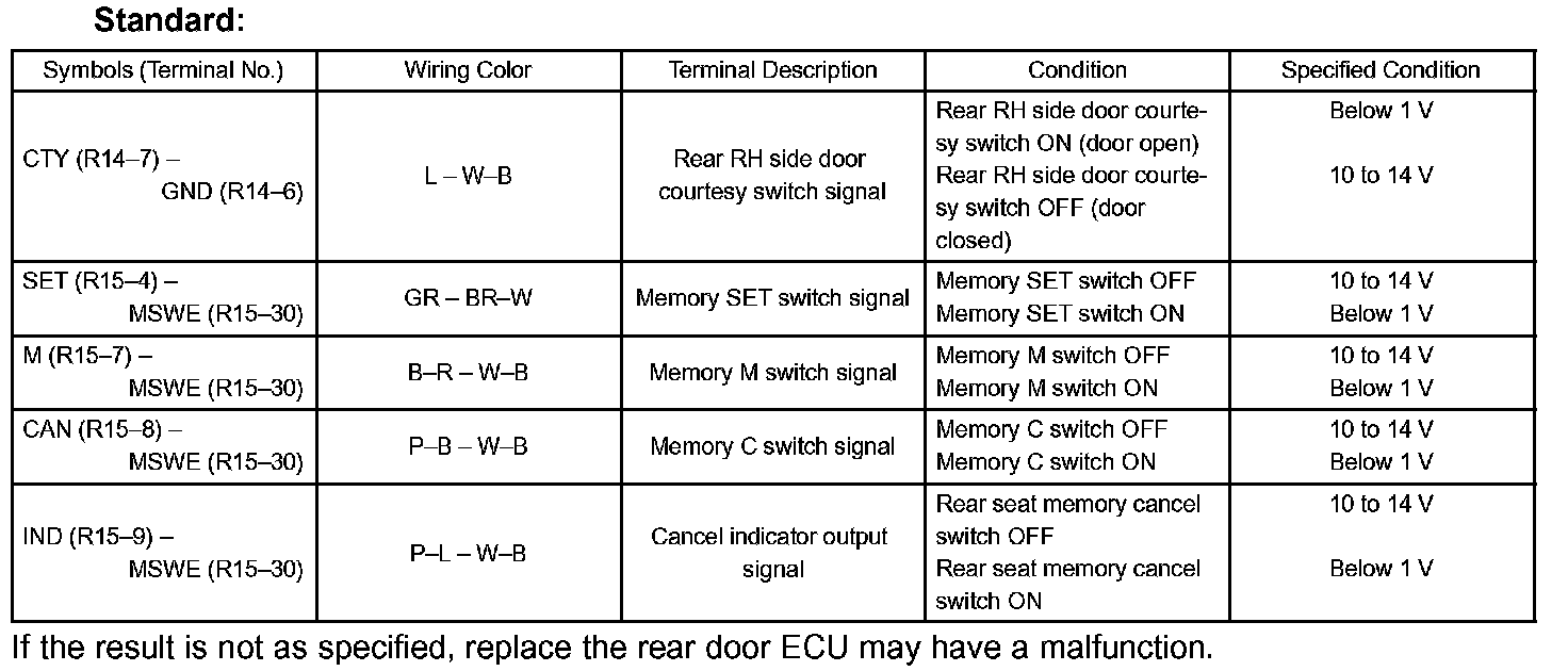 Terminals Of ECU / Pinouts - Check Rear Door RH ECU: