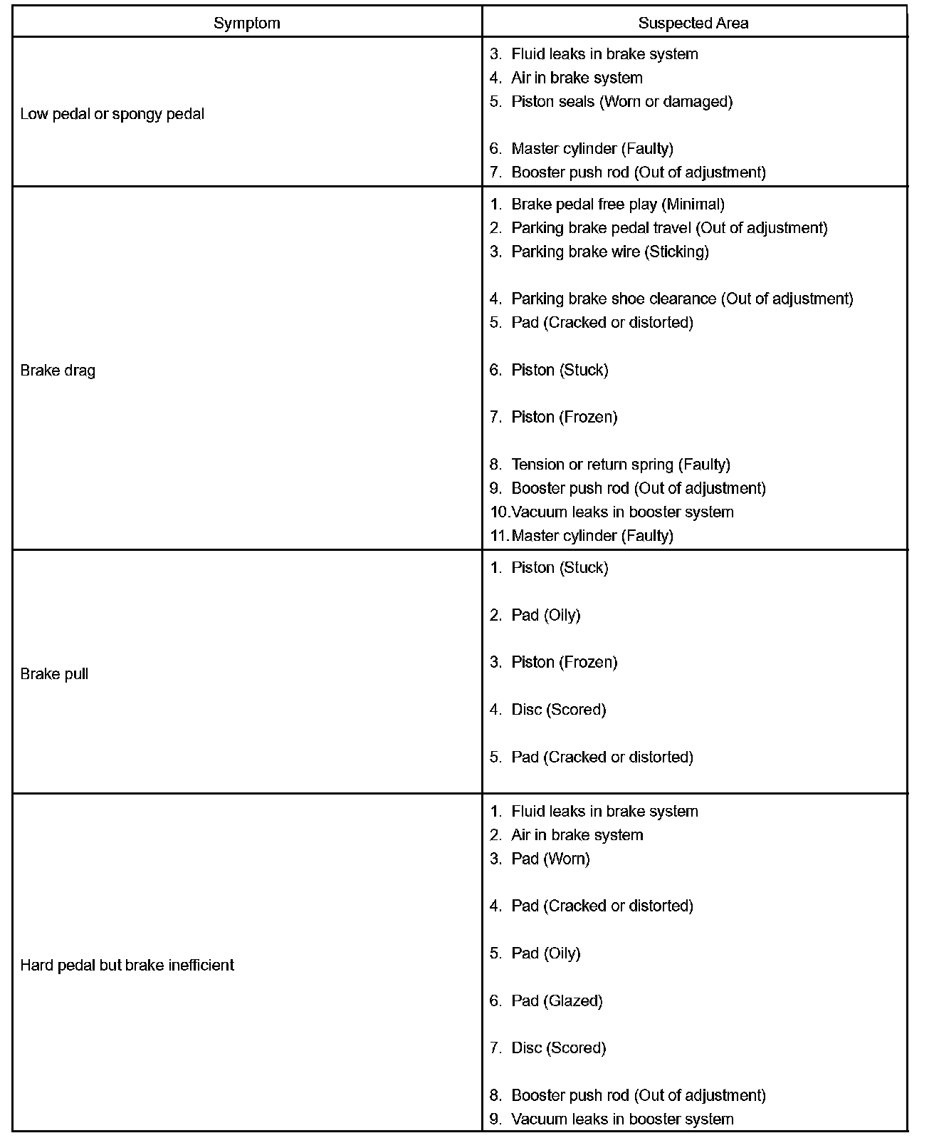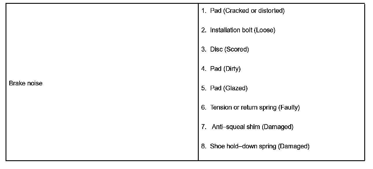 HINT: Refer to the table to help find the cause of the problem. The numbers indicate the priority of the possible cause of problem. Check each part in the order. If necessary, replace these parts.