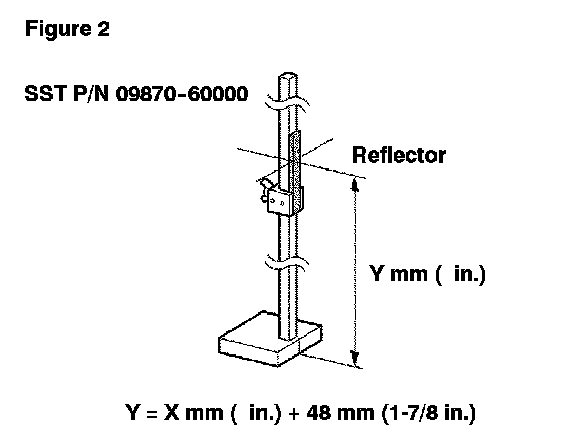 B. Adjust the center height of the reflector 48 mm (1-7/8 in.) higher than the measurement taken for the center of the luminous portion of the laser sensor.