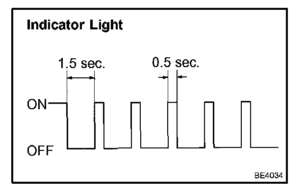 b. Check that the CRUISE main indicator light comes on when the cruise control main switch ON-OFF button is push on, and that the indicator light goes off when the ON-OFF button is pushed off.