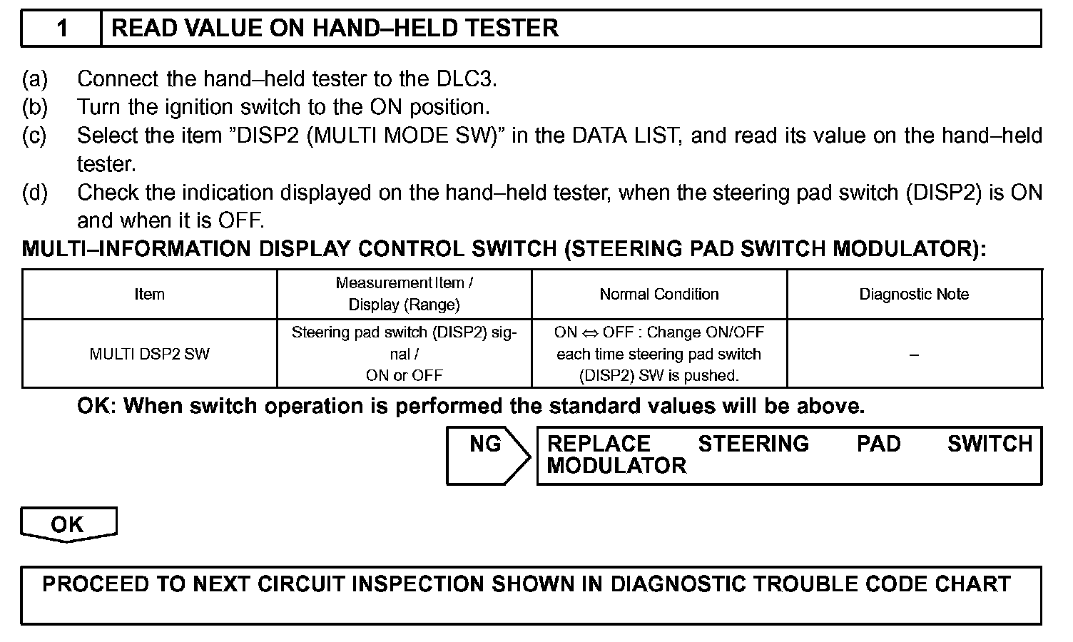 The steering pad switch modulator uses BEAN to communicate with each ECU. Therefore it does not have a direct connection with the ECM. If there are any malfunctions in the communication line of the steering pad switch modulator, one or more DTCs in the multiplex communication system is/are output.