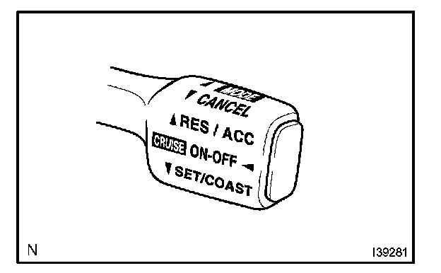 HINT: If the system cannot switch to the constant speed control mode, push the ON-OFF button off once, and perform the same procedures as shown. If a malfunction is still detected in the system, start the engine again and perform the procedure.
