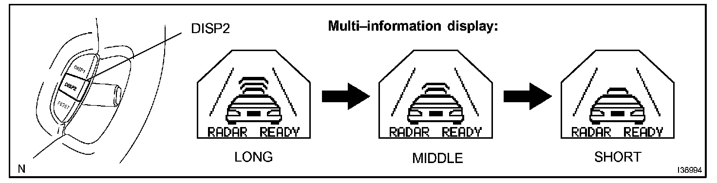 c. Push on the distance control switch (DISP2) of the steering pad switch.