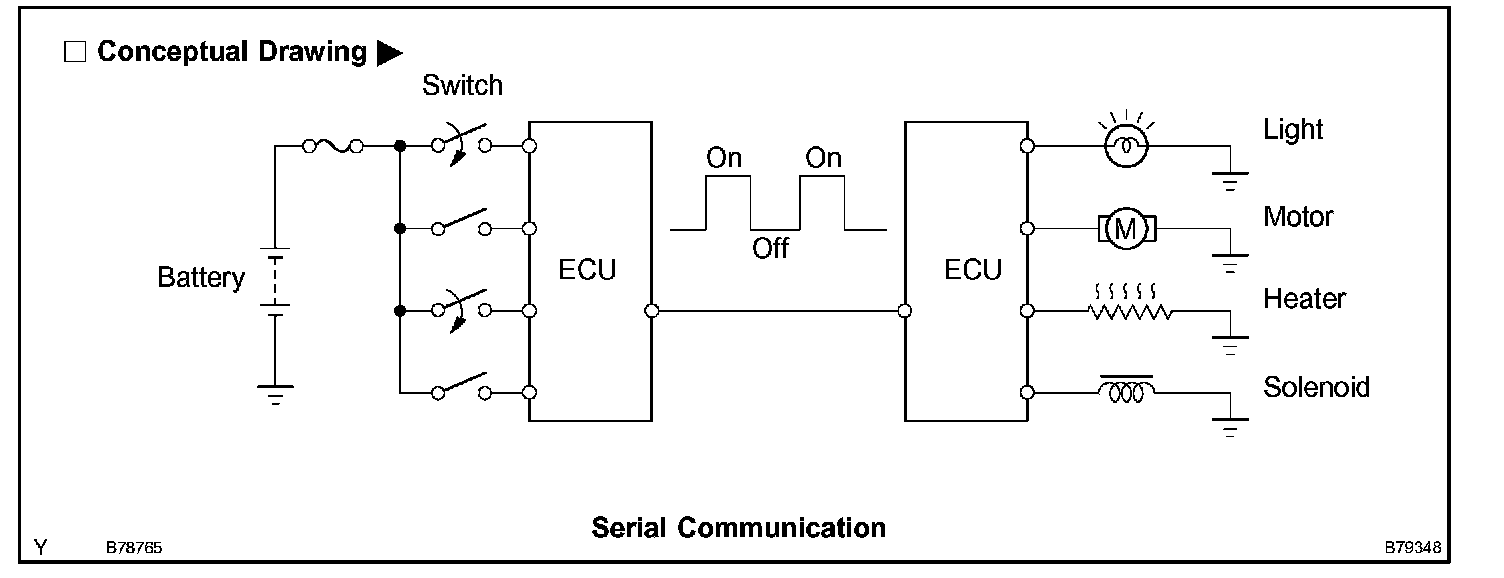 The LEXUS LS430 multiplex communication uses serial communication, which converts multiple pieces of information into serial communication data. As a result, they can be transmitted through a single communication wire.