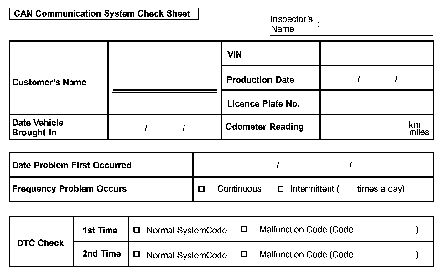 CAN Communication System Check Sheet: