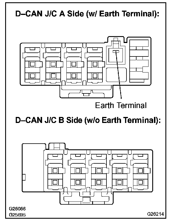 d. The terminals on connectors for the CAN J/C.
