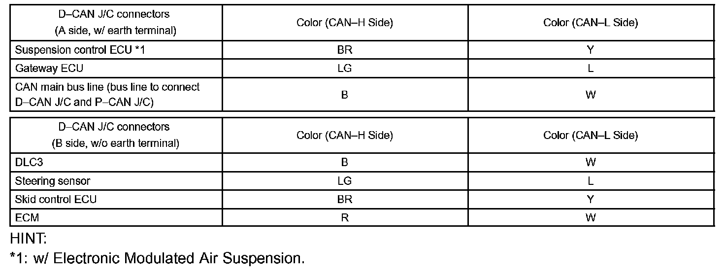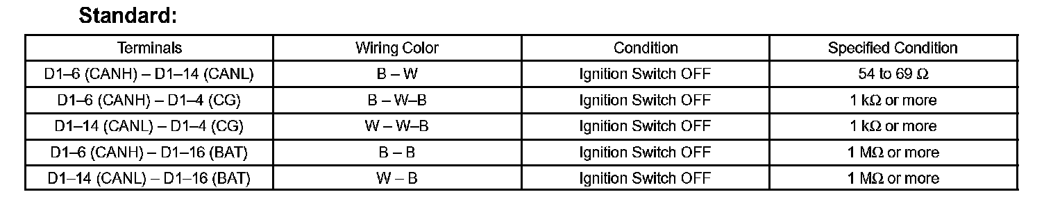 TERMINALS OF ECUHINT: This section describes the standard CAN values for all CAN related components.