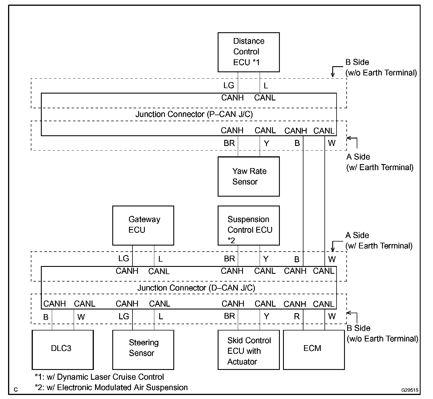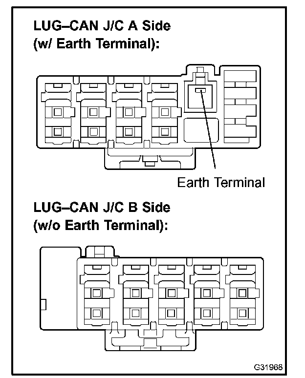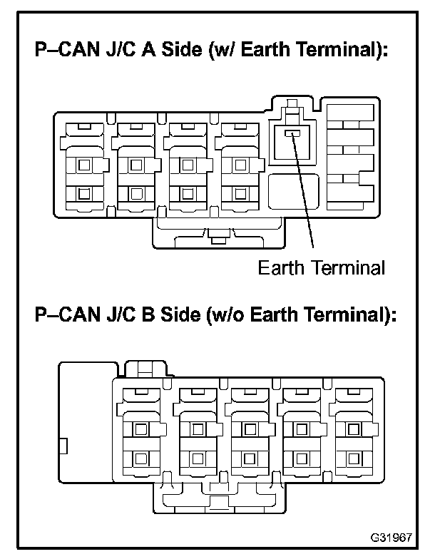 - The connectors connected to the CAN J/C can be distinguished by the colors of the bus lines and the connecting side of the connector.