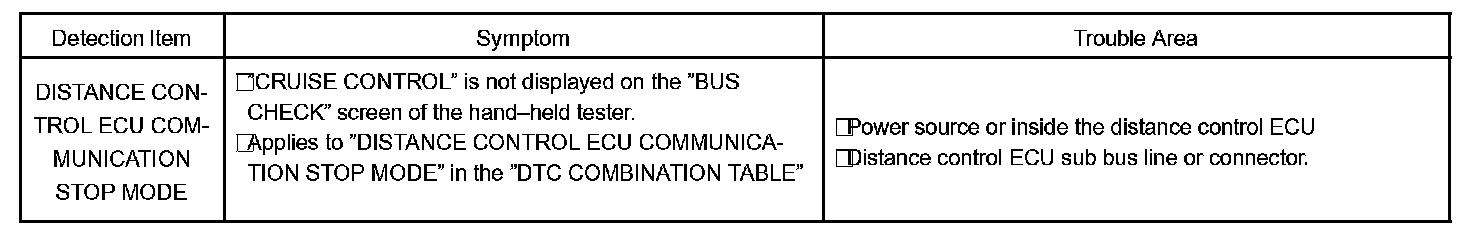Distance Control ECU Communication Stop Mode