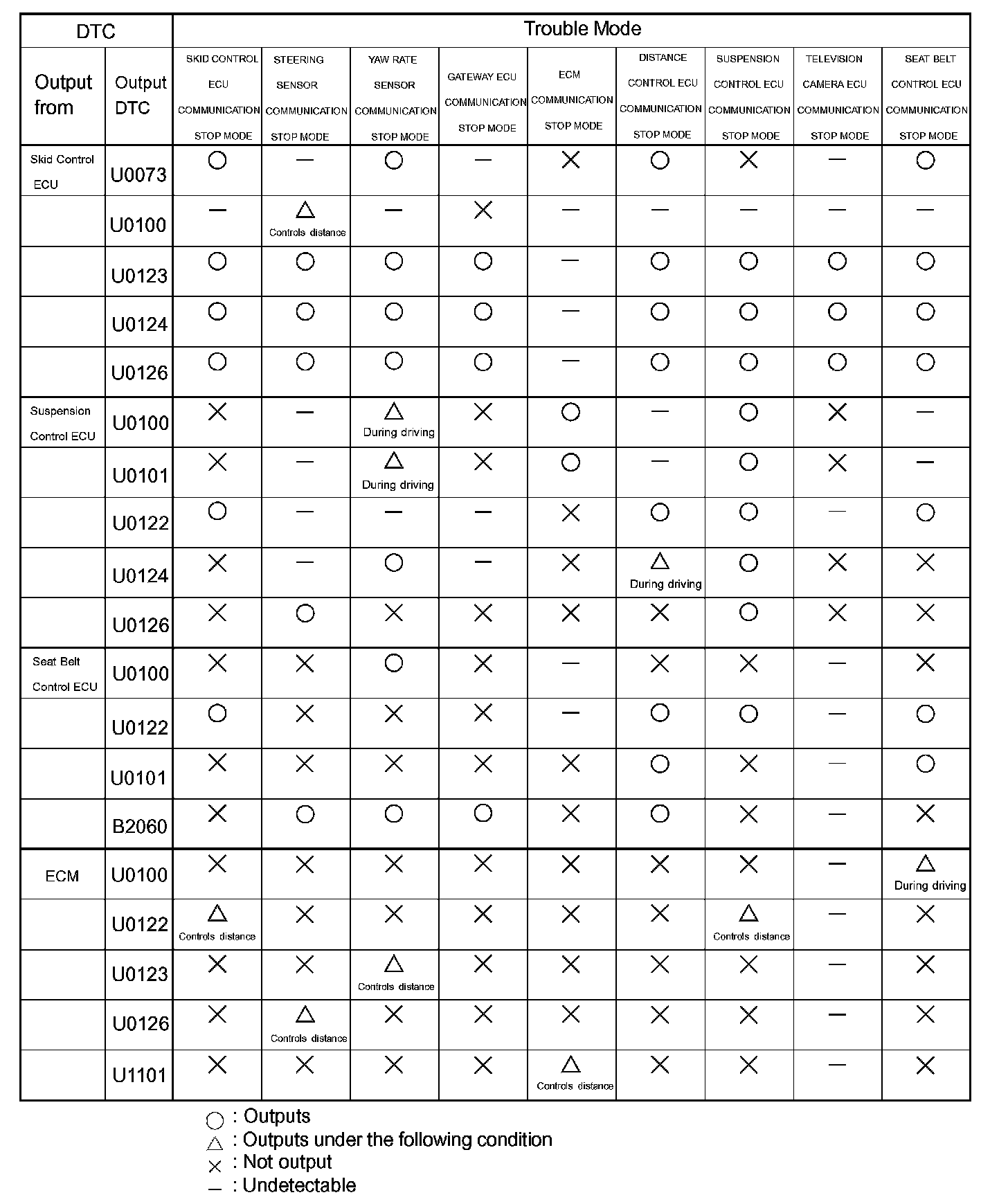 - DISTANCE CONTROL ECU COMMUNICATION STOP MODE: