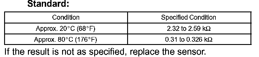 If the result is not as specified, replace the sensor.