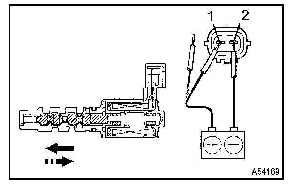 b. Connect the battery's positive (+) lead to terminal 1 and negative (-) lead to terminal 2. Check the movement of the valve.