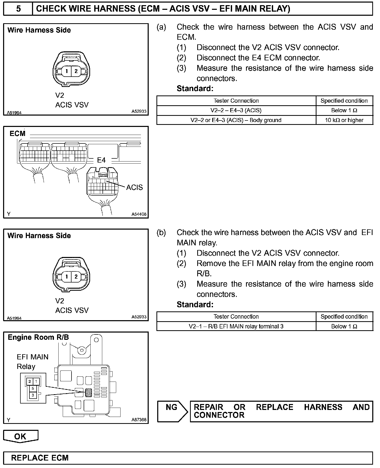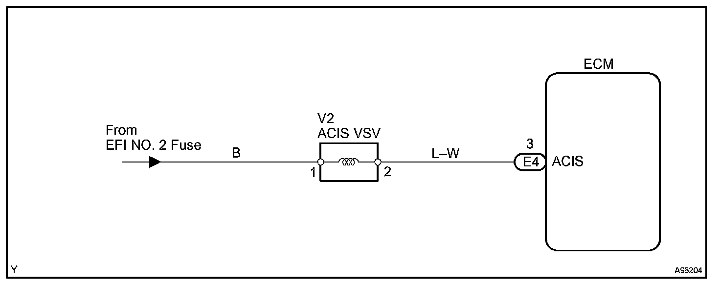 CIRCUIT DESCRIPTIONThis circuit opens and closes the Intake Air Control Valve (IACV) in response to the engine load in order to increase the intake efficiency (ACIS: Acoustic Control Induction System).