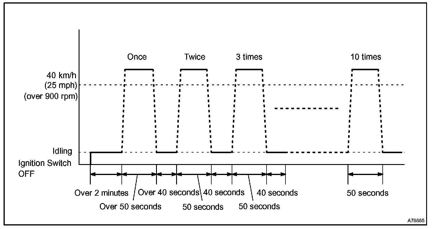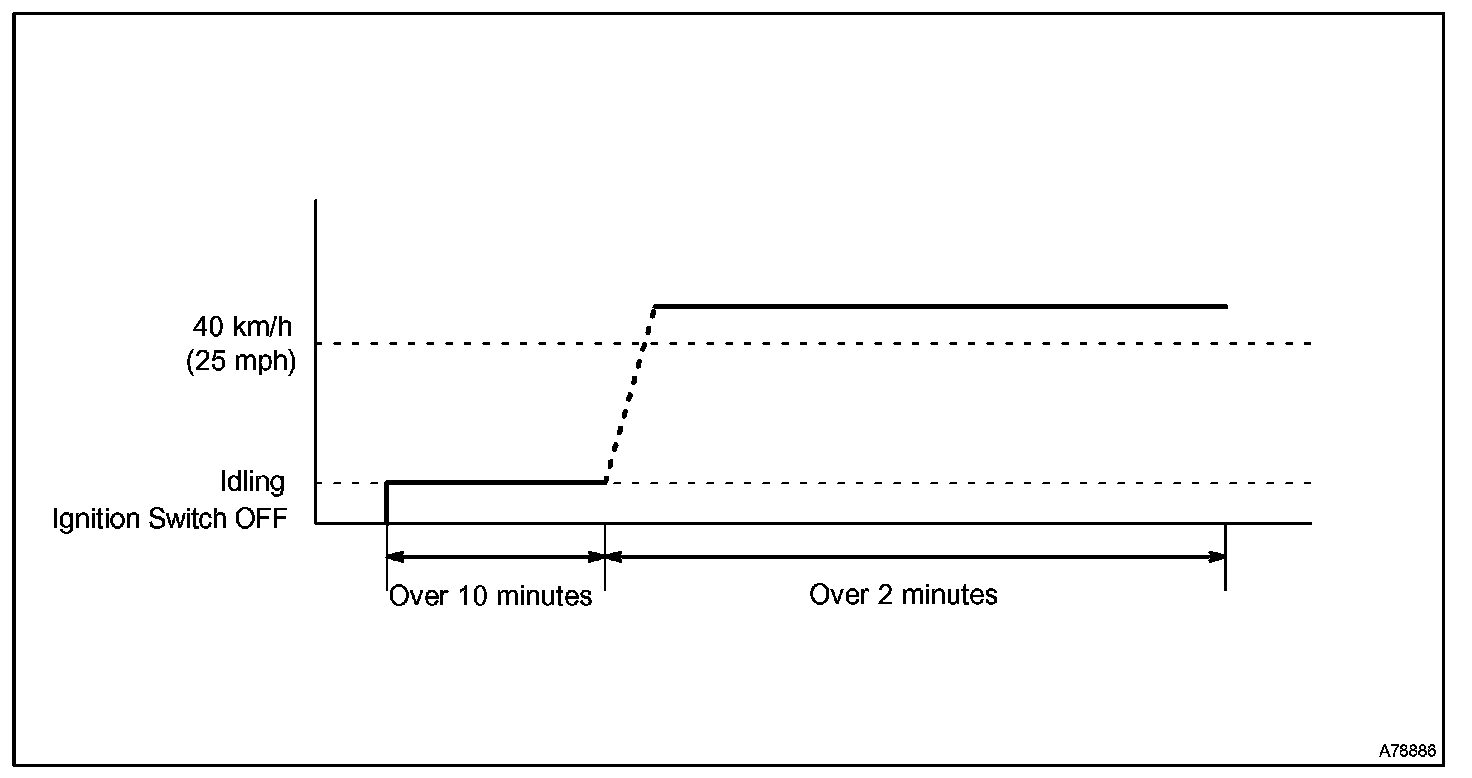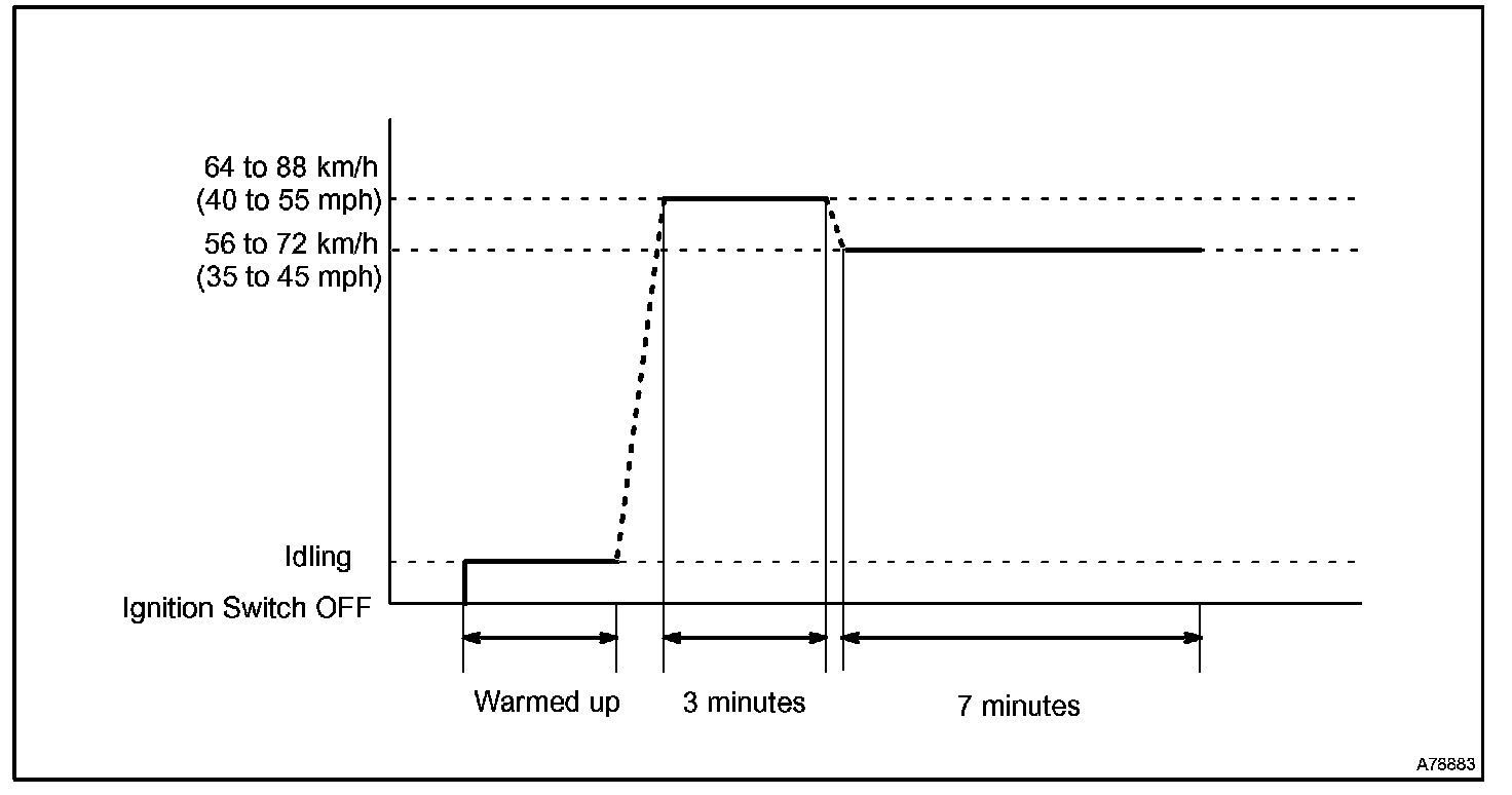 2. Drive vehicle at 64 to 88 km/h (40 to 55 mph) for approximately 3 minutes.