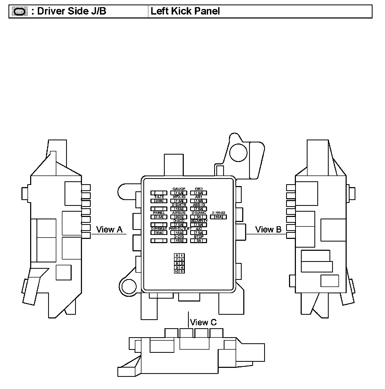 Driver Side J/B - Left Kick Panel: