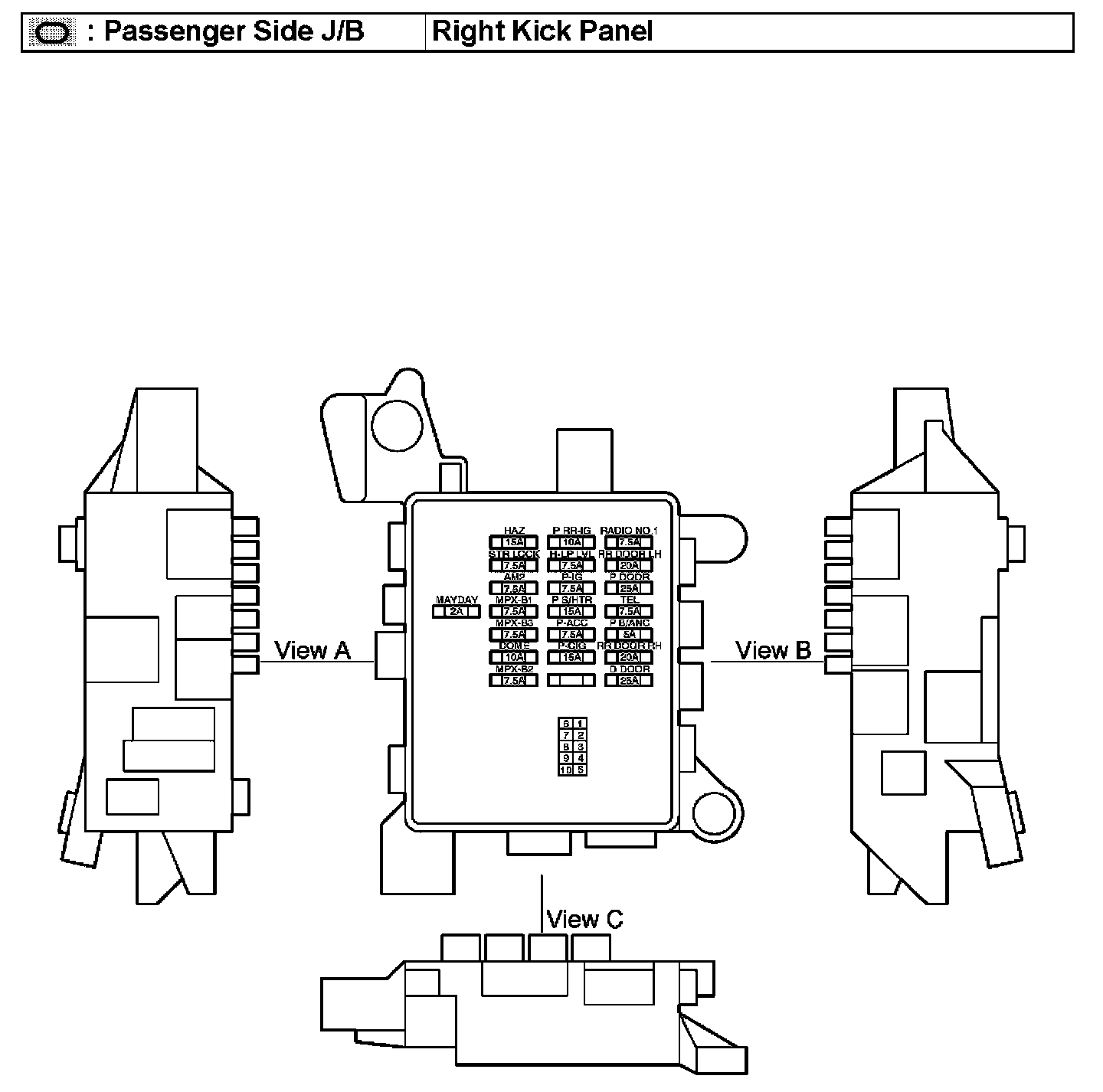 Passenger Side J/B - Right Kick Panel: