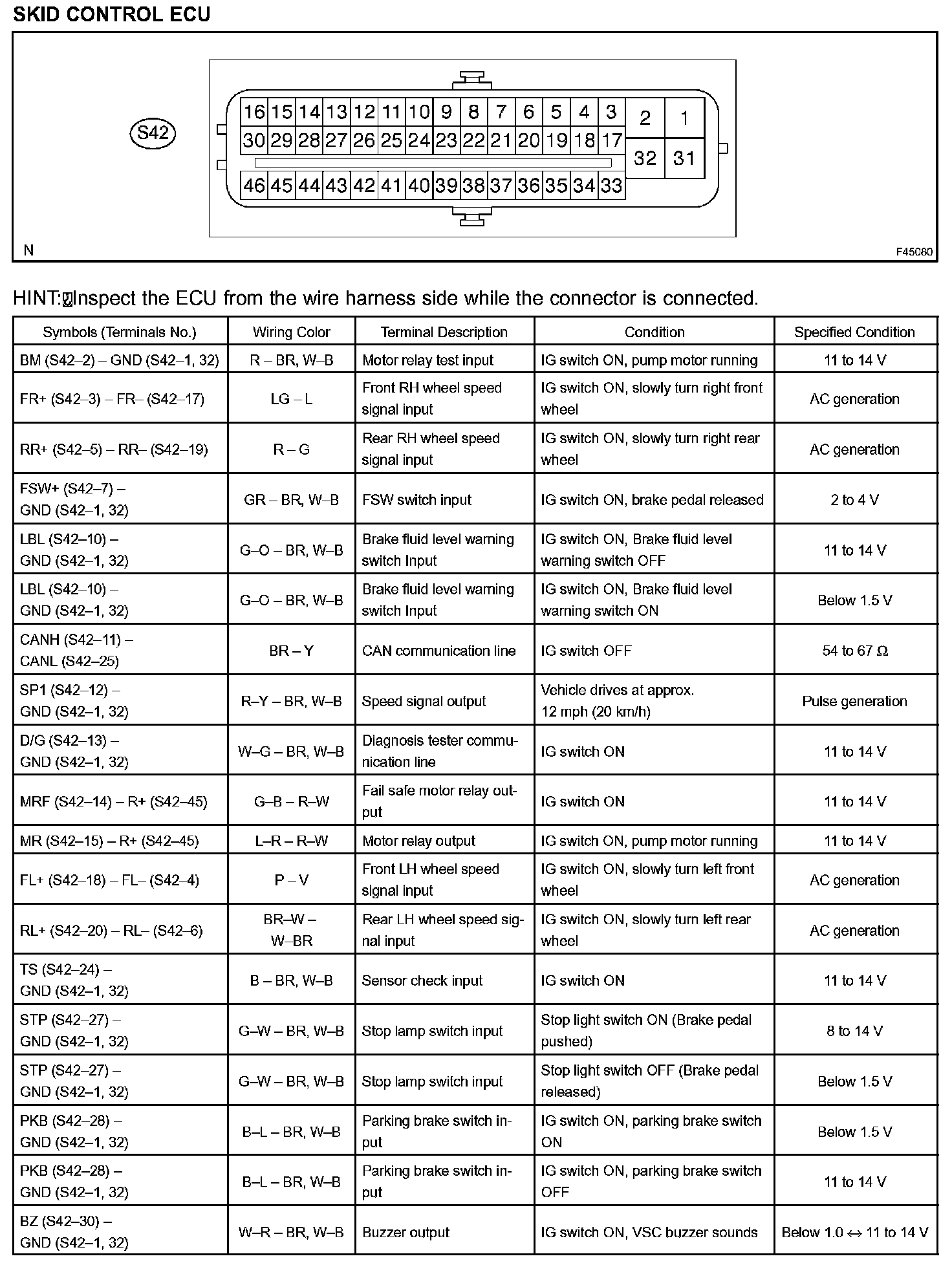 Terminals Of ECU/Pinouts - Skid Control ECU Part 1: