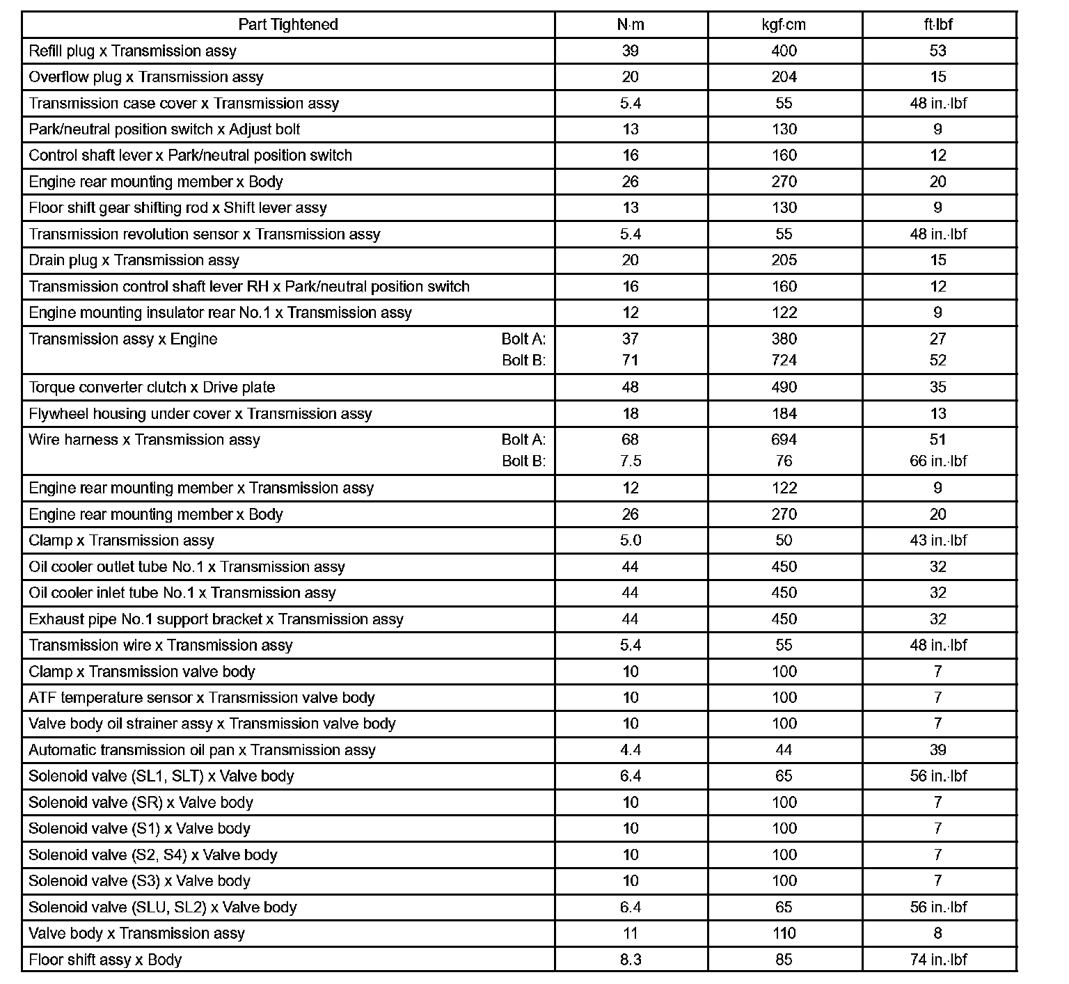 Torque Specifications