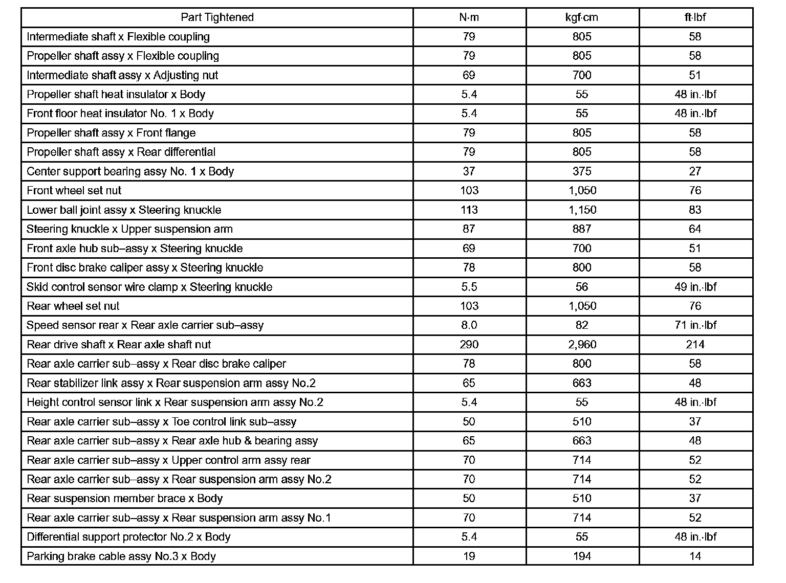 Torque Specification