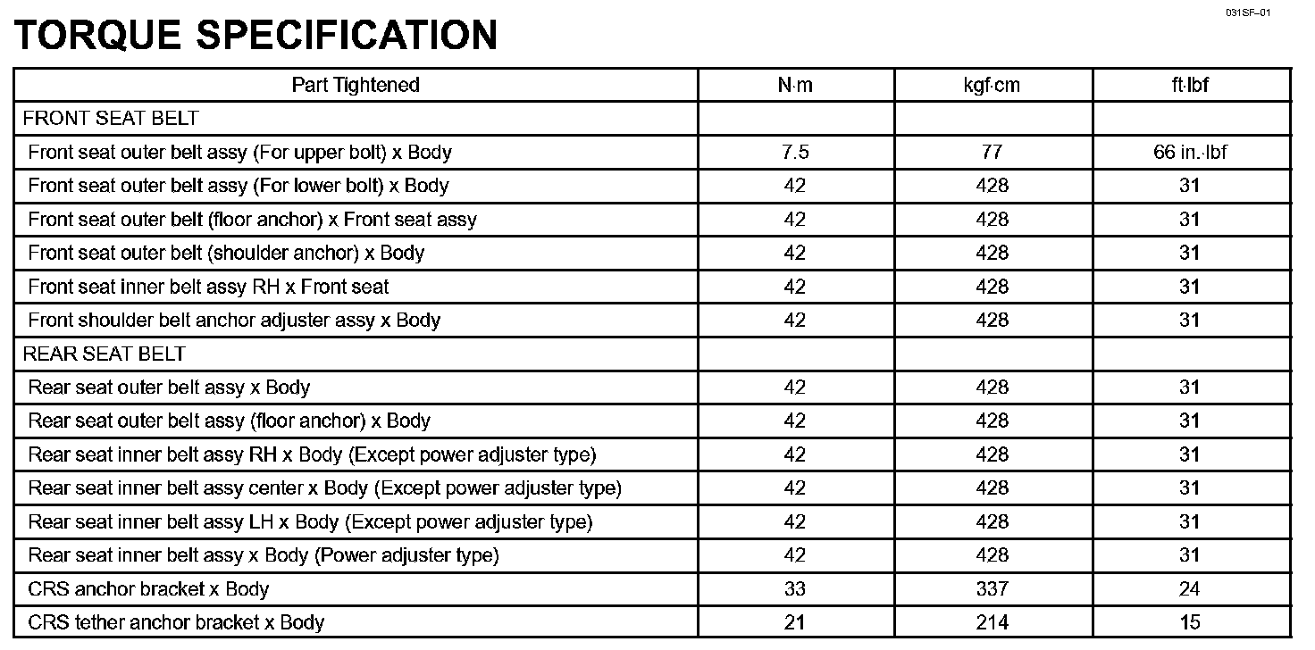 Seat Belt - Torque Specification: