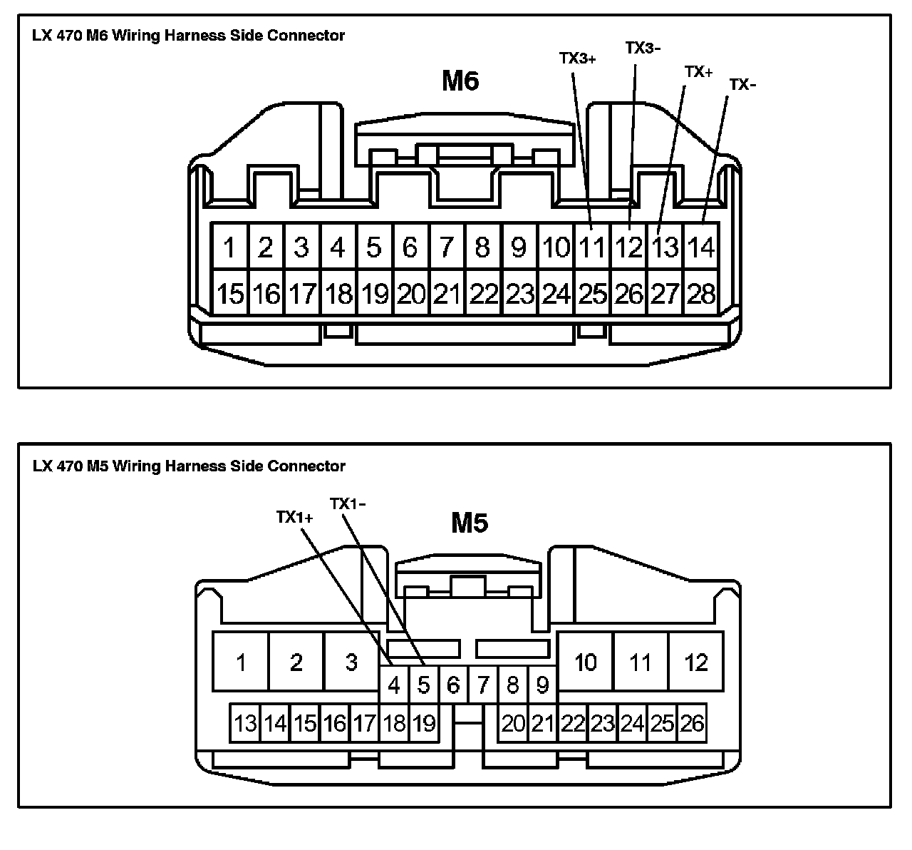 1. Check all the TX terminals on the multi-display connectors (please see connector diagrams) and confirm the terminals are fully seated. Replace any damaged terminals or connectors.