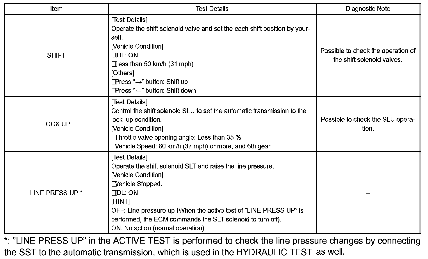 HINT: The pressure values in ACTIVE TEST and HYDRAULIC TEST are different from each other.