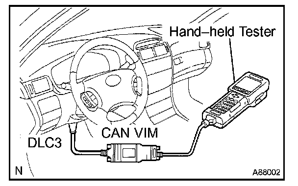a. Connect the hand held tester to the CAN VIM. Then connect the CAN VIM to the DLC3.