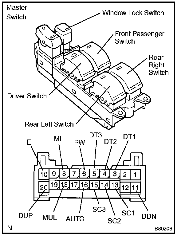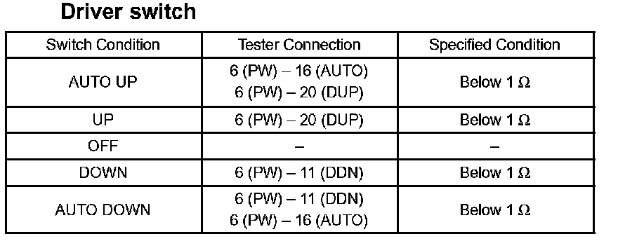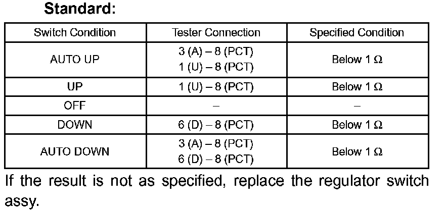 INSPECT POWER WINDOW REGULATOR SWITCH ASSEMBLY