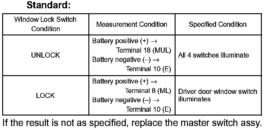 INSPECT POWER WINDOW REGULATOR MASTER SWITCH ASSEMBLYa. Remove the switch.