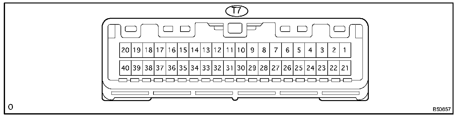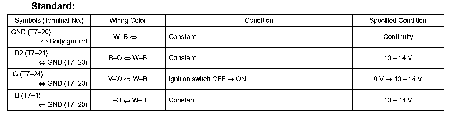 a. Disconnect the the T7 ECU connector, and check the voltage or continuity between each terminal of the wire harness side connector.
