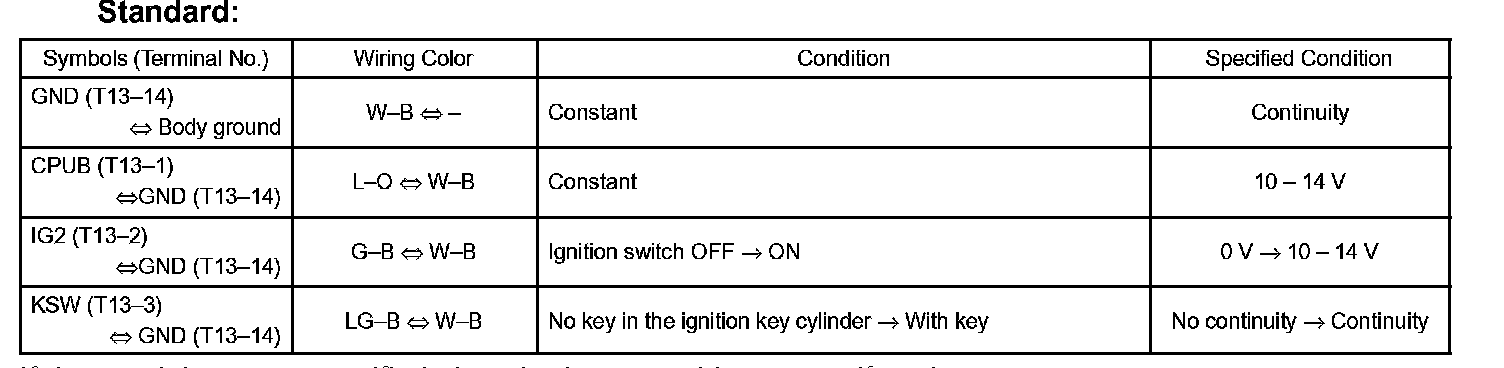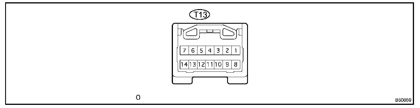 a. Disconnect the the T13 ECU connector, and check the voltage or continuity between each terminal of the wire harness side connector.