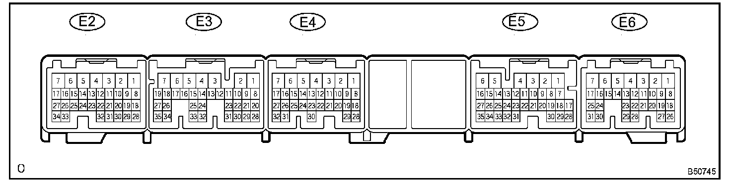 a. Disconnect the the E3, E5 and E6 ECU connectors, and check the voltage or continuity between each terminal of the wire harness side connectors.
