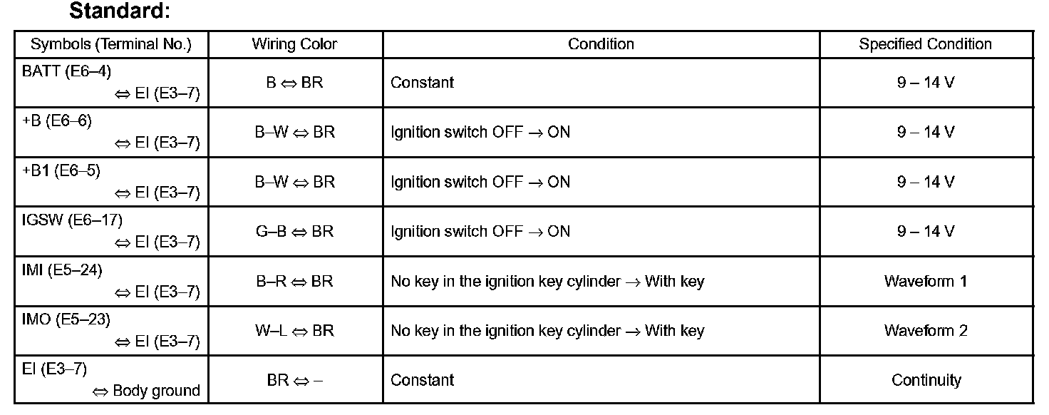 Terminals Of ECU/Pinouts - Inspect Transponder Key ECU: