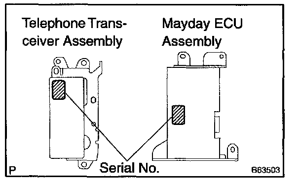 NOTE: Make sure that the last 4 digits of serial No. of the mayday ECU assembly correspond to those of the telephone transceiver assembly.