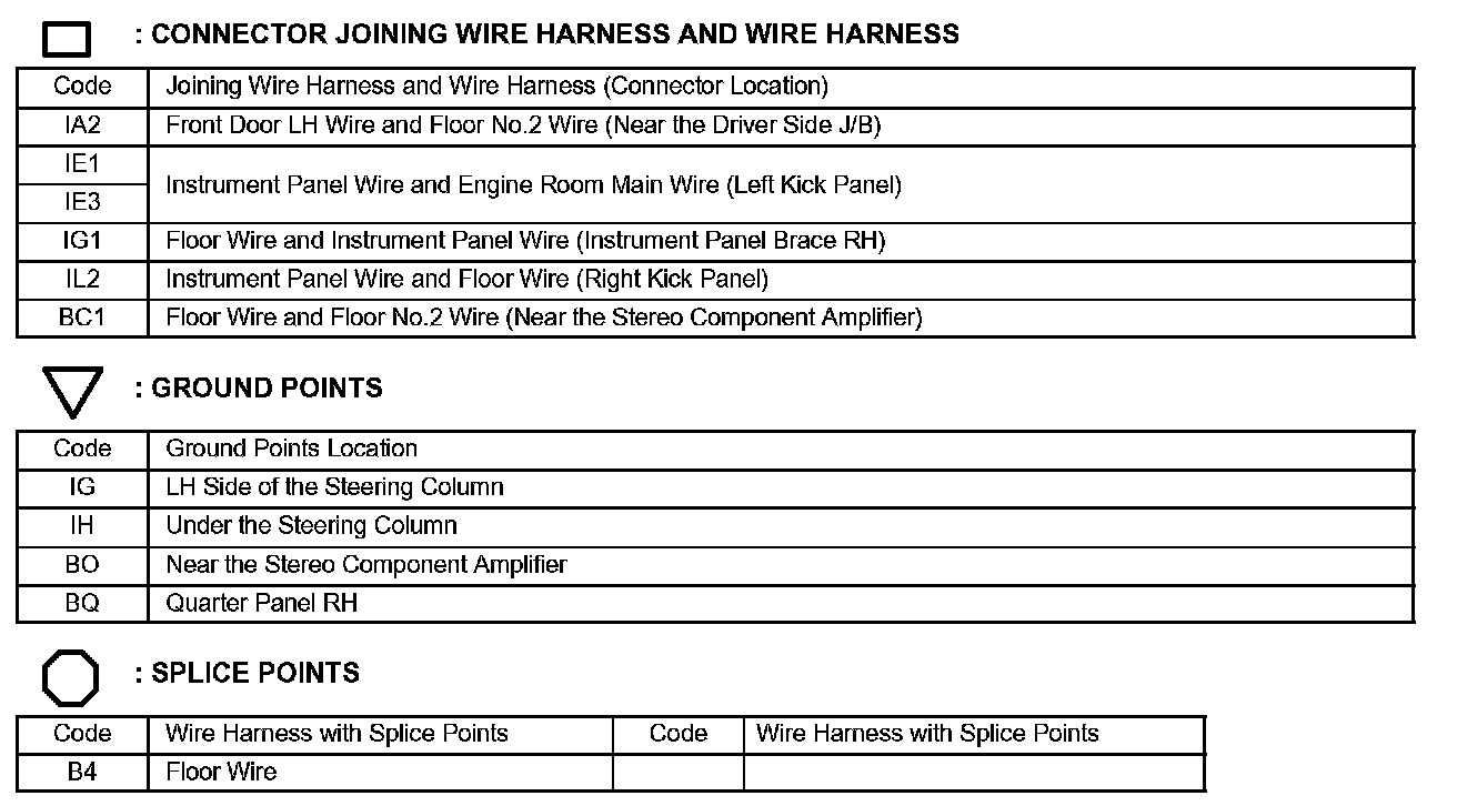 Locations: The locations of components, connectors, ground points, and splices referred to within these diagrams can be found at Vehicle Locations. Locations