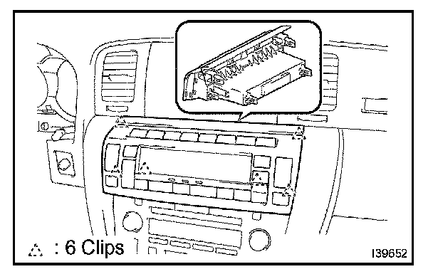 (a) Pull the air conditioner control assy towards the rear of the vehicle and disengage the 6 clip fittings.