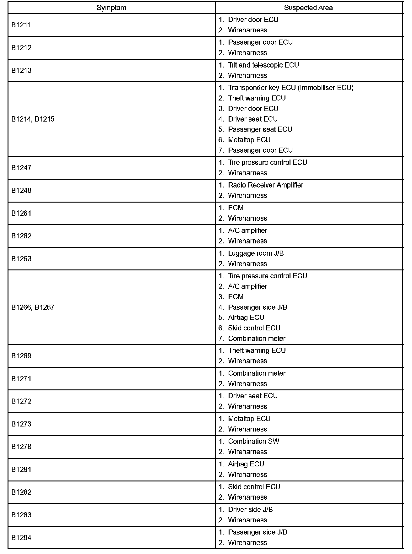 Problem Symptoms Table Part 2: