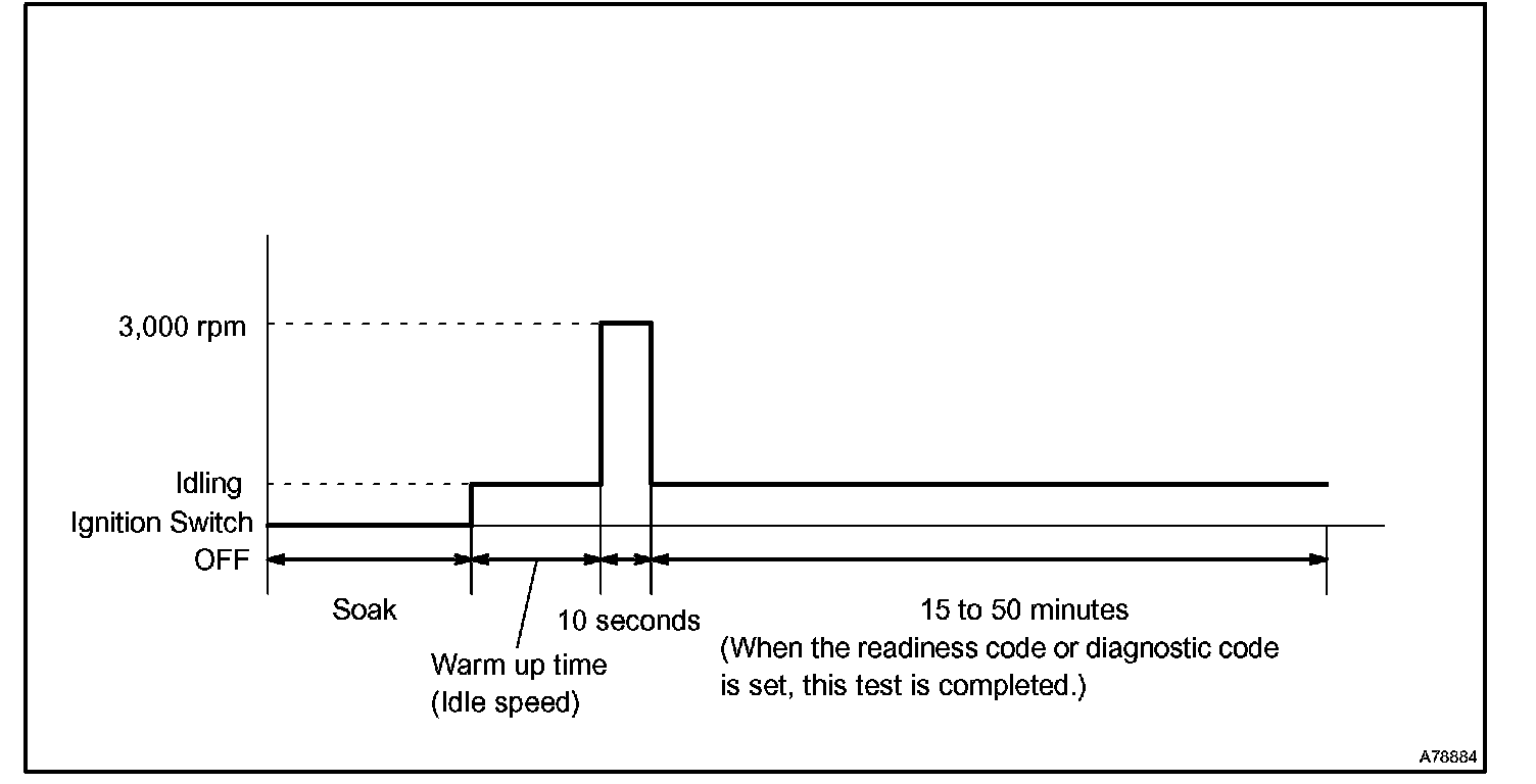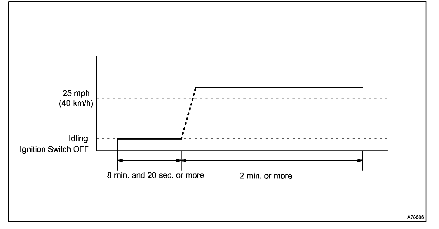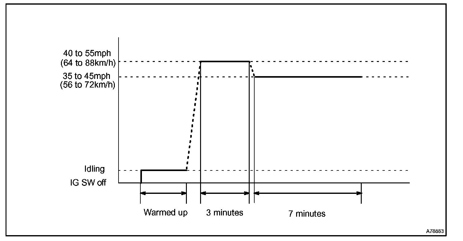 If IAT was less than 10 °C (50 °F) when the engine was started, drive the vehicle at 40 to 55 mph (64 to 88 km/h) for an additional 3 minutes.